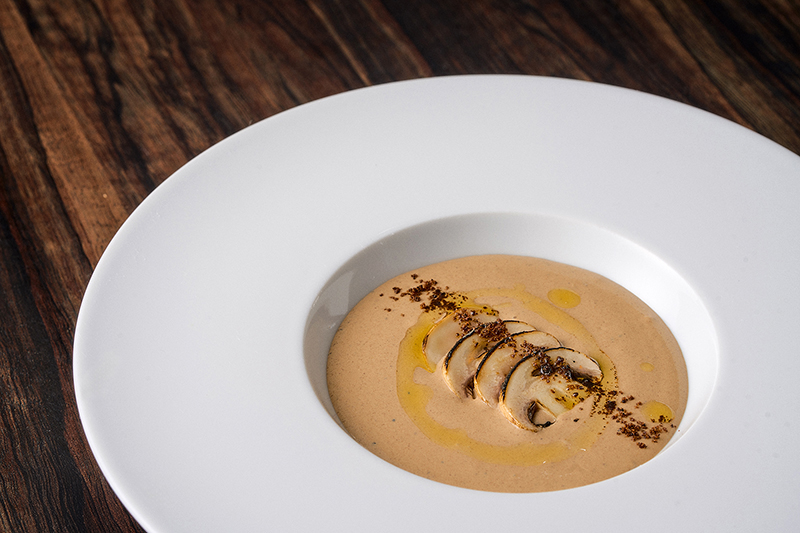 芳醇なトリュフとポルチーニ茸の旨みが濃厚な香り高い茸のスープ
