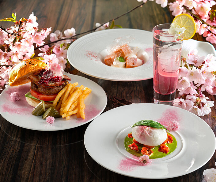 桜限定メニューは、毎年好評の桜バーガーをはじめ、フレッシュなブラータチーズを主役にした桜ブラータ、ふんわりと香り立つ桜シフォンなど、この時期だけの特別なラインナップ。
